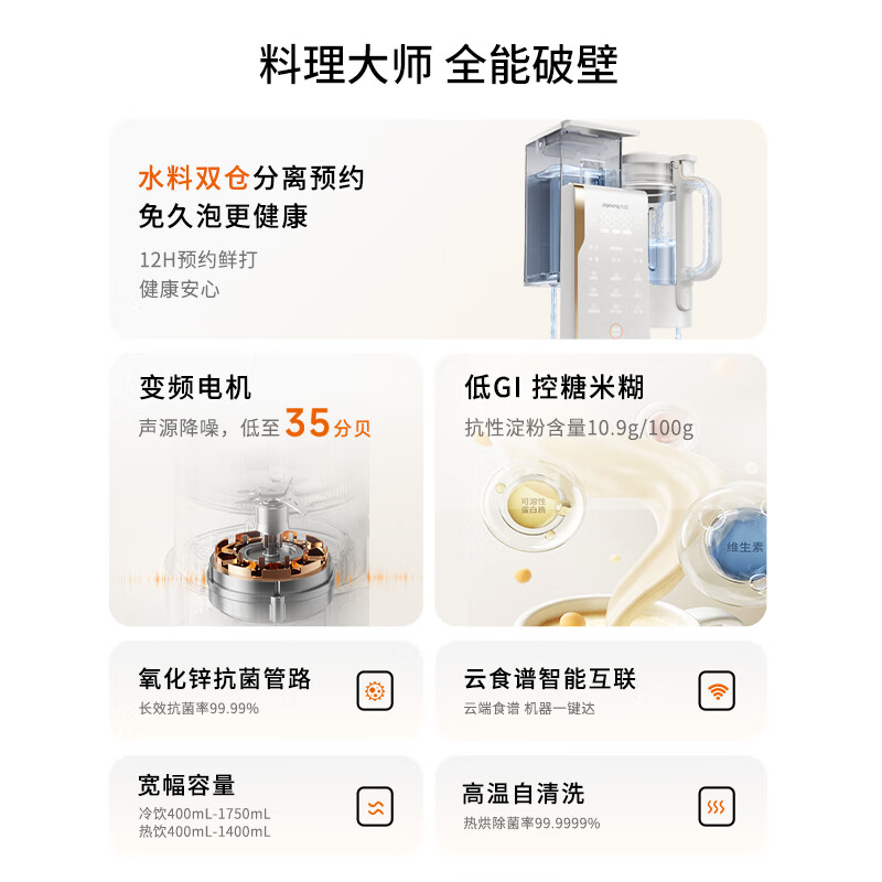 九阳不用手洗破壁机全自动多功能低音家用料理机旗舰店升级新款Y1