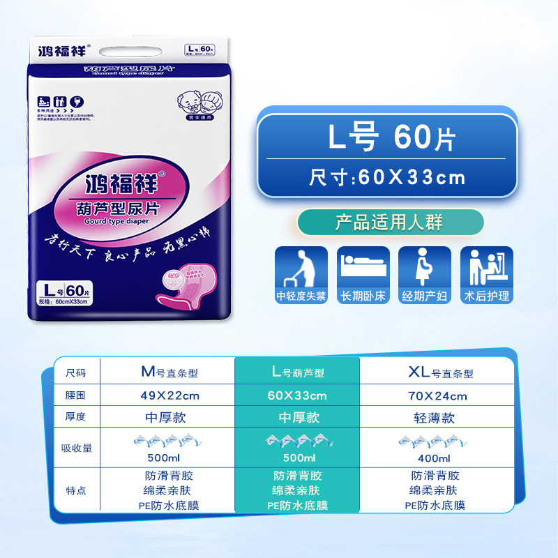 淘宝成人纸尿片老人用尿不湿男8葫芦型加大号成年纸尿裤鸿福祥尿片女