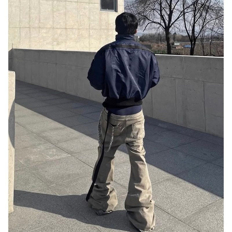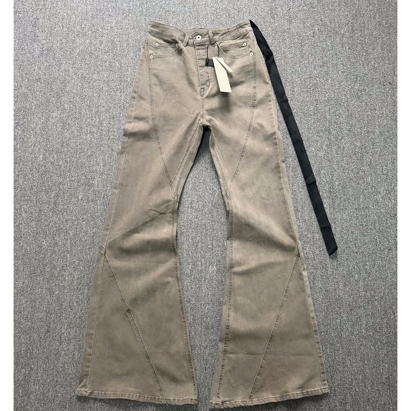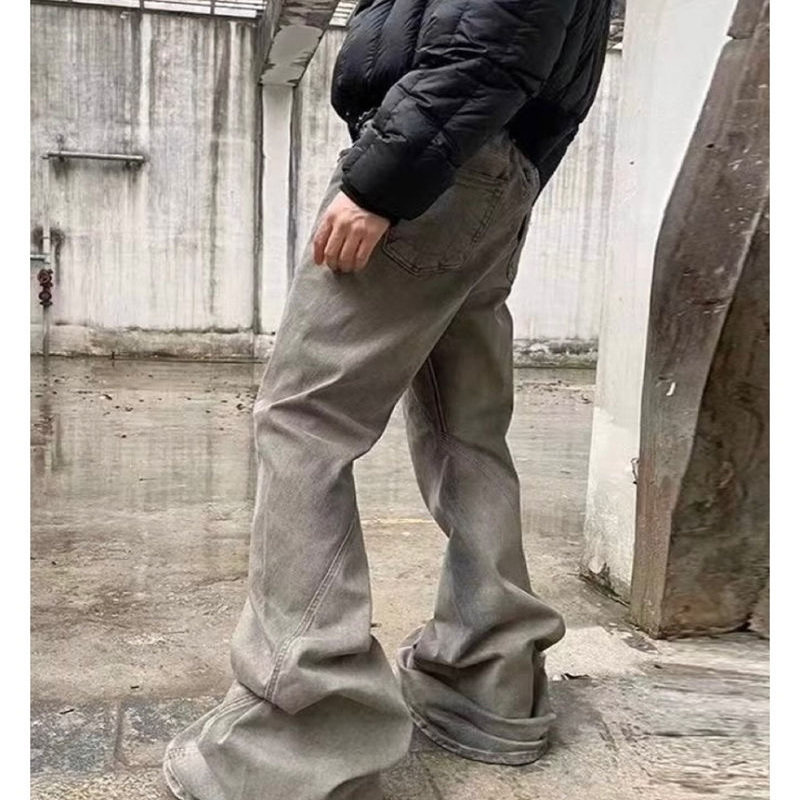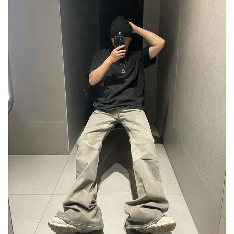 淘宝RO风格大地色水洗拖地弹力修身喇叭阔腿显瘦堆积牛仔裤潮男女长裤