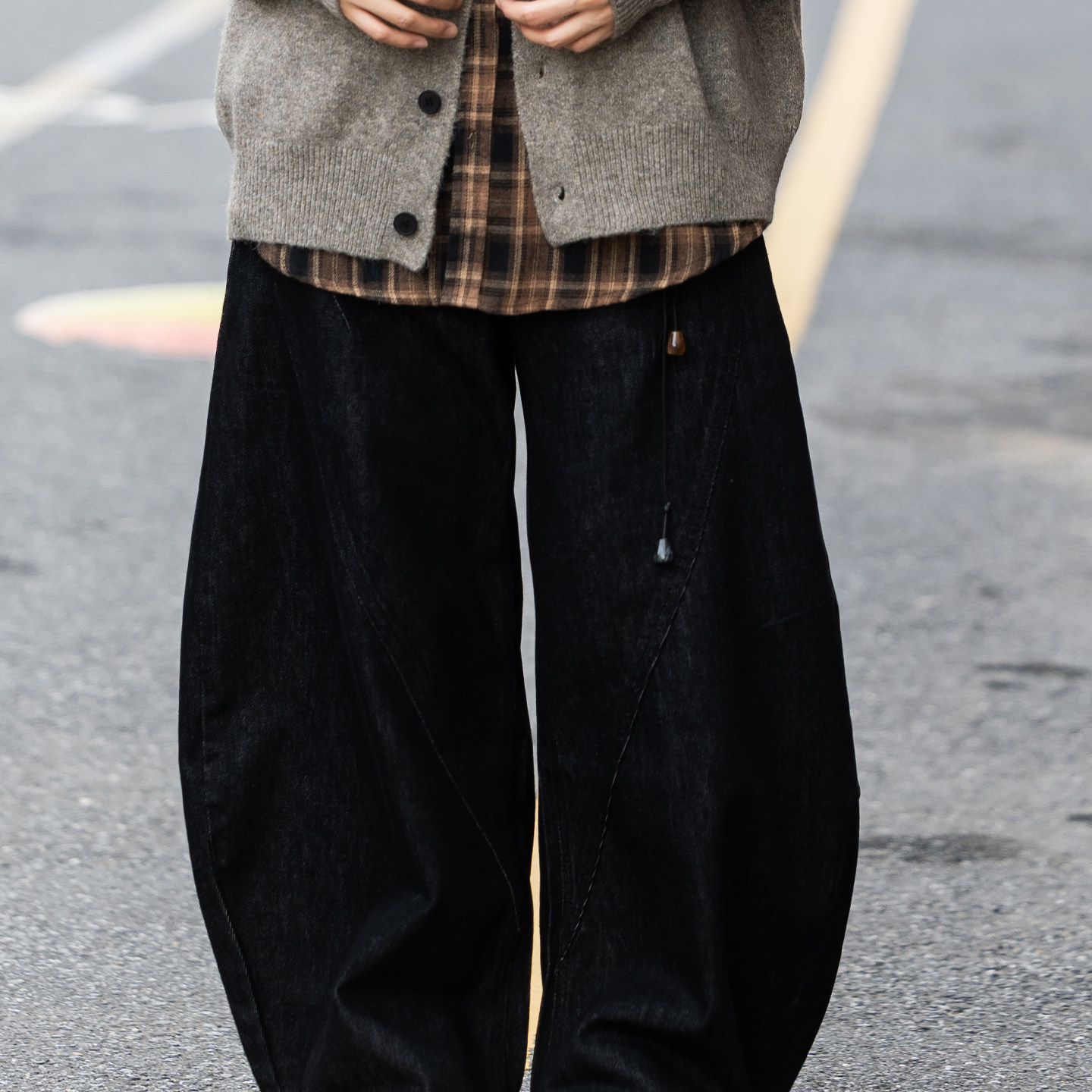 淘宝日系复古水洗做旧弯刀立体裁剪牛仔裤男女休闲百搭直筒阔腿长裤潮