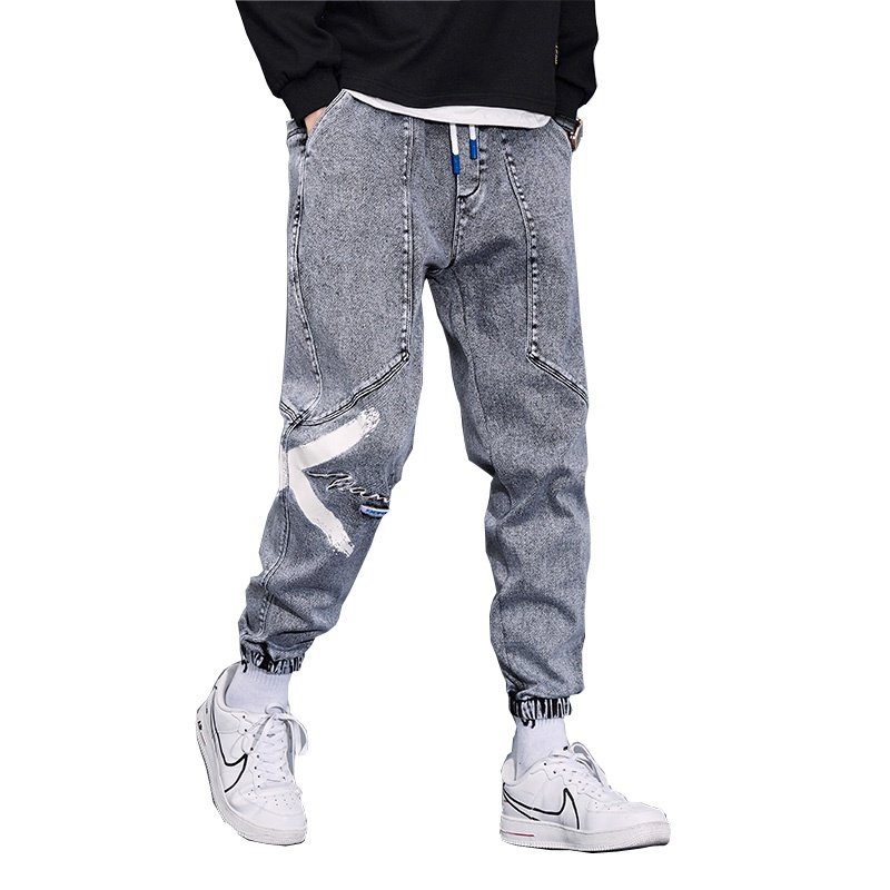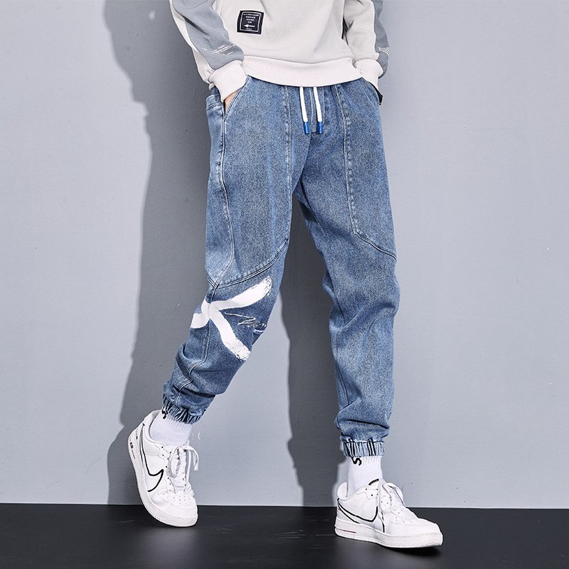 春秋季男士潮牌百搭修身束脚束脚百搭潮流高级休闲小脚水洗牛仔裤