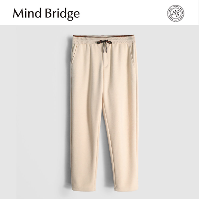 天猫Mind Bridge2025秋冬男老钱风含羊毛混纺直筒休闲裤户外保暖卫裤