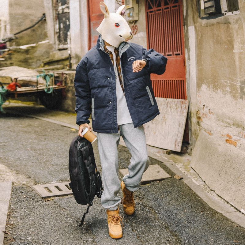 淘宝兔先森冬季卫裤日系百搭男士加绒加厚休闲裤潮牌宽松直筒运动裤子