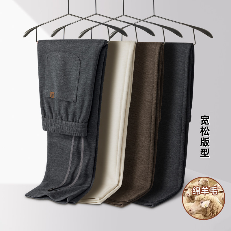 淘宝意大利绵羊毛休闲裤男秋冬款直筒男裤冬季加厚卫裤抗皱免烫运动裤
