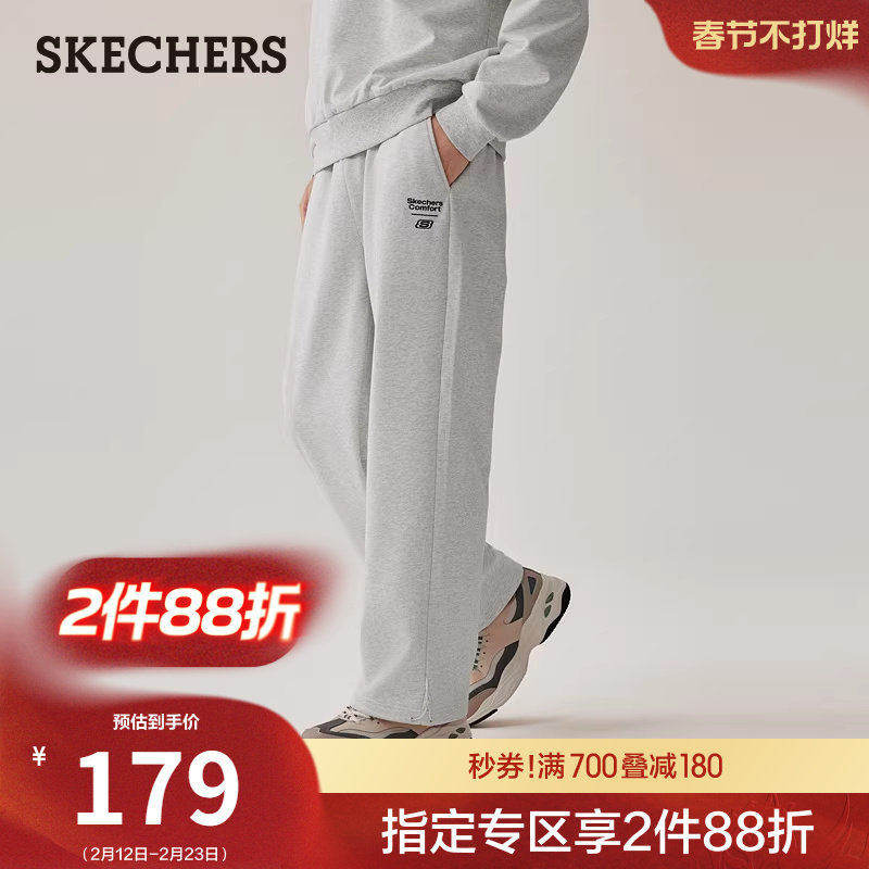 天猫斯凯奇春季流行时尚男士针织布长裤休闲运动裤直筒阔腿裤百搭卫裤