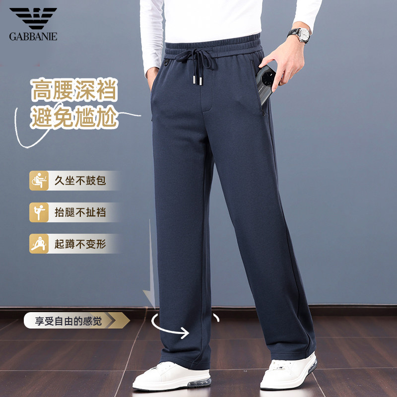 意大利绵羊毛休闲裤男秋冬款直筒男裤冬季加厚卫裤抗皱免烫运动裤