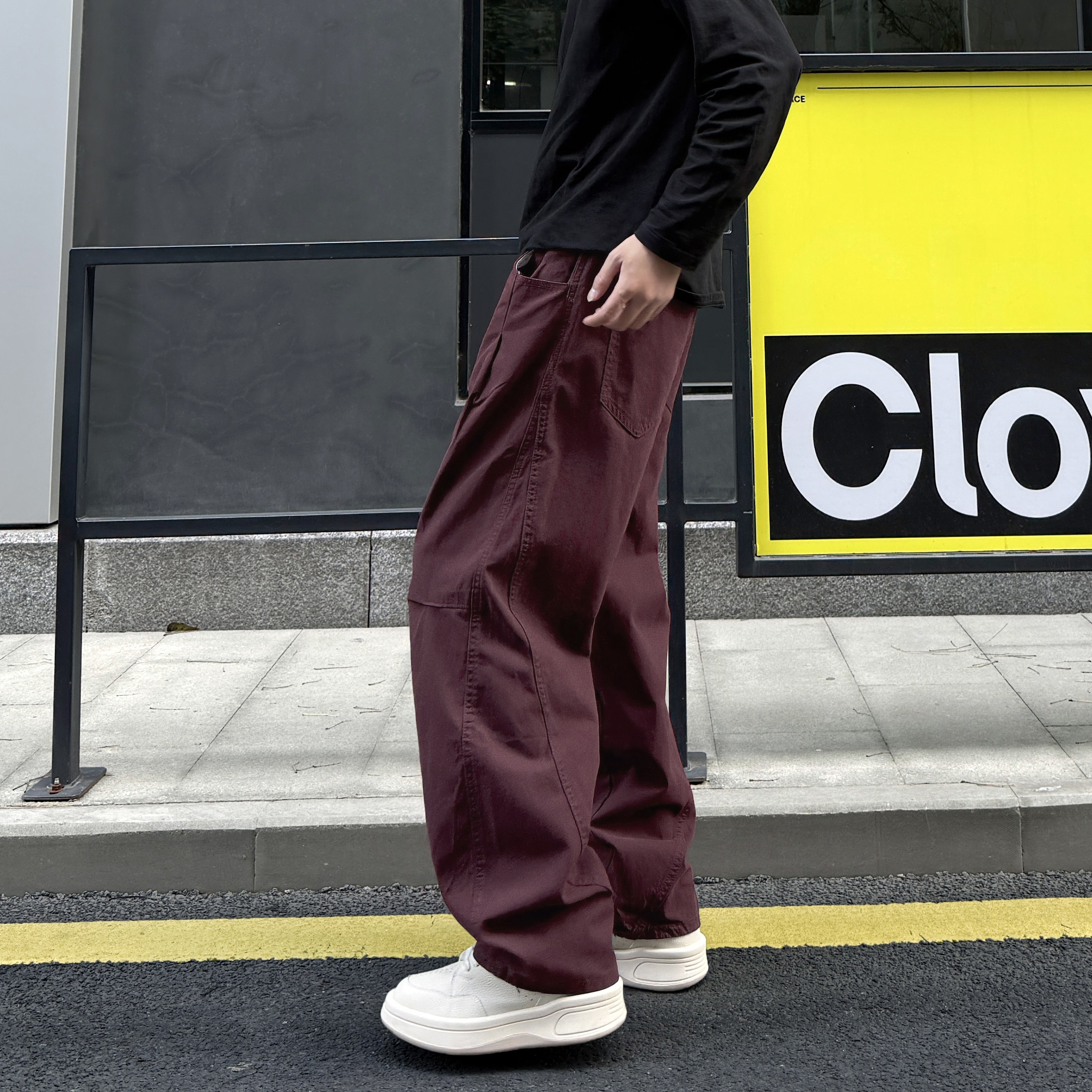 天猫QUALCOMM潮牌设计感酒红色弯刀休闲裤男秋冬款宽松高街痞帅工装裤