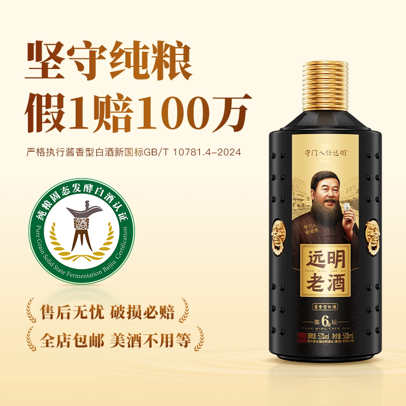 远明老酒陈坛6是一款来自贵州茅台镇的53度酱香型白酒,精选本地优质高粱、小麦为原料,采用传统“12987”古法酿造工艺,历经多年陶坛陈藏,酒体醇厚、酱香突出、回味悠长。其口感细腻柔和,空杯留香持久,完美展现酱香型白酒的独特魅力。搭配美食更显风味,无论是红烧肉、烤鸭,还是麻辣火锅,皆能相得益彰,带来味蕾惊喜。现推出“纯粮美食惊喜卷”活动,购酒即享专属优惠,让品质好酒与地道美食相遇,开启一场舌尖上的醇香之旅。远明老酒,匠心传承,值得品味。