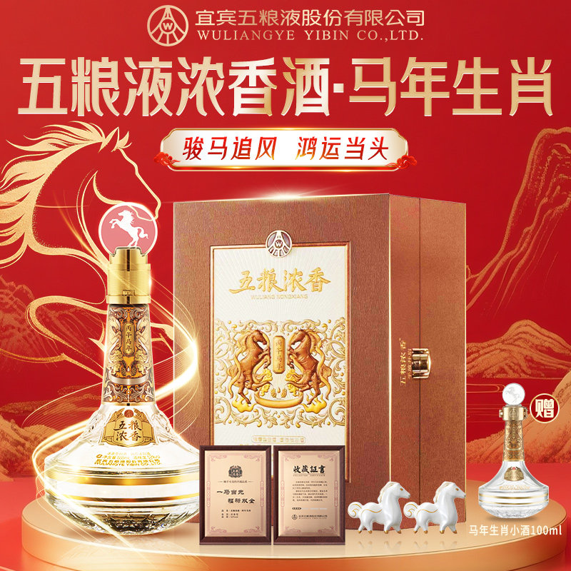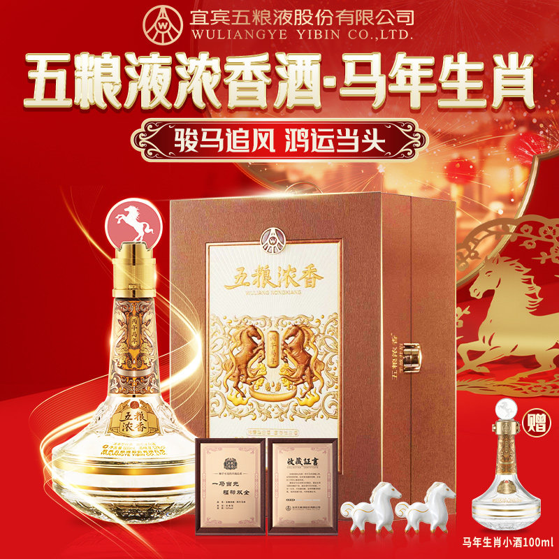 天猫【年度新品】五粮浓香 马年生肖纪念酒888ml 丙午年送礼收藏封酒