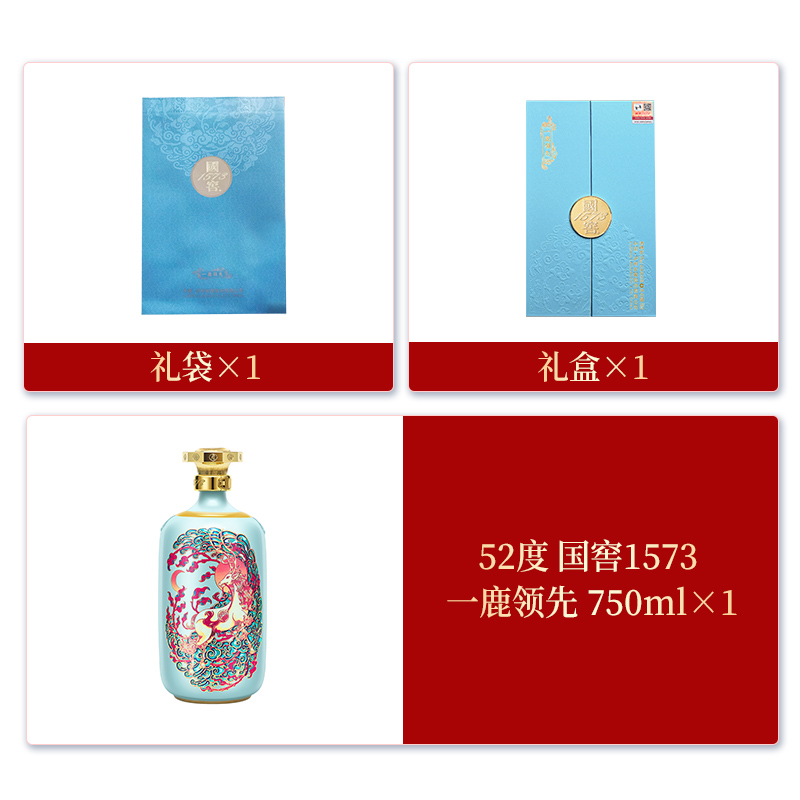 天猫国窖1573一鹿领先52度750ml 浓香型白酒礼盒摆柜收藏过节送老丈人