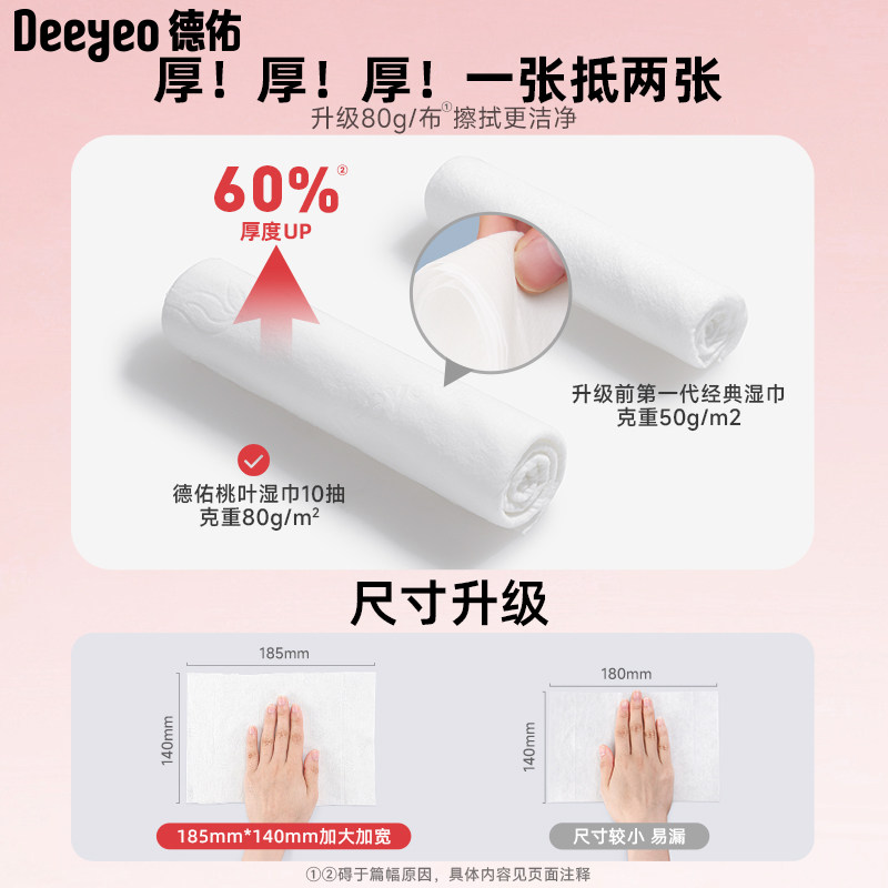 【达人专享】德佑婴儿手口湿巾桃叶加厚10抽*30包