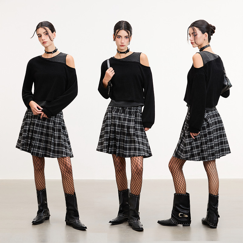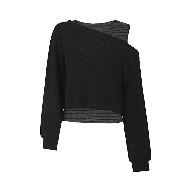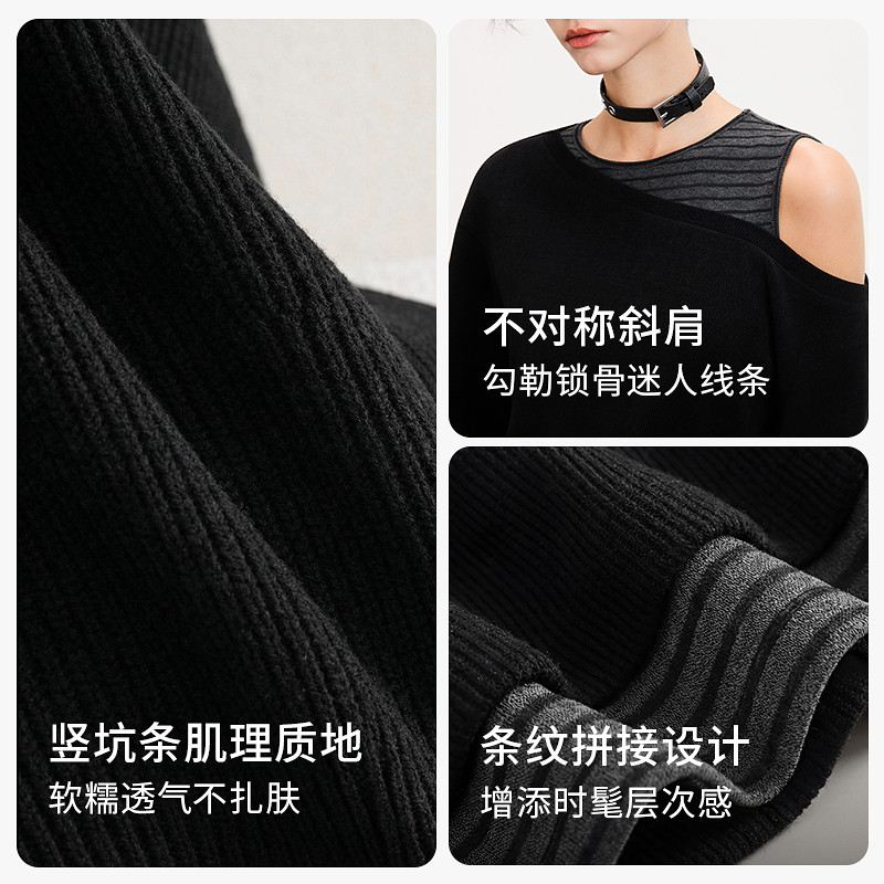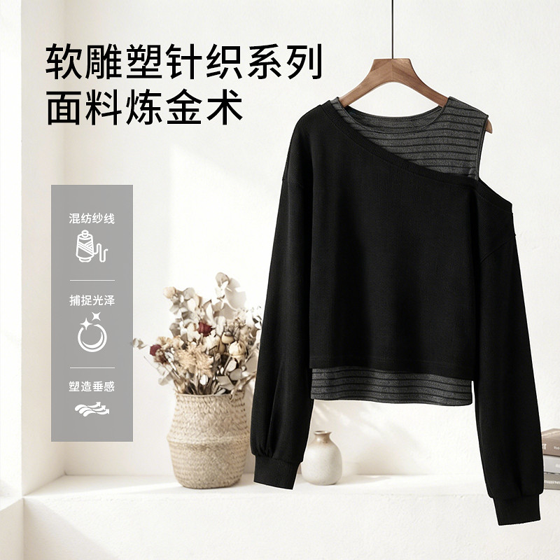 天猫sdeer圣迪奥女装26年新品慵懒圆领露肩不对称假两件T恤S261Z0204