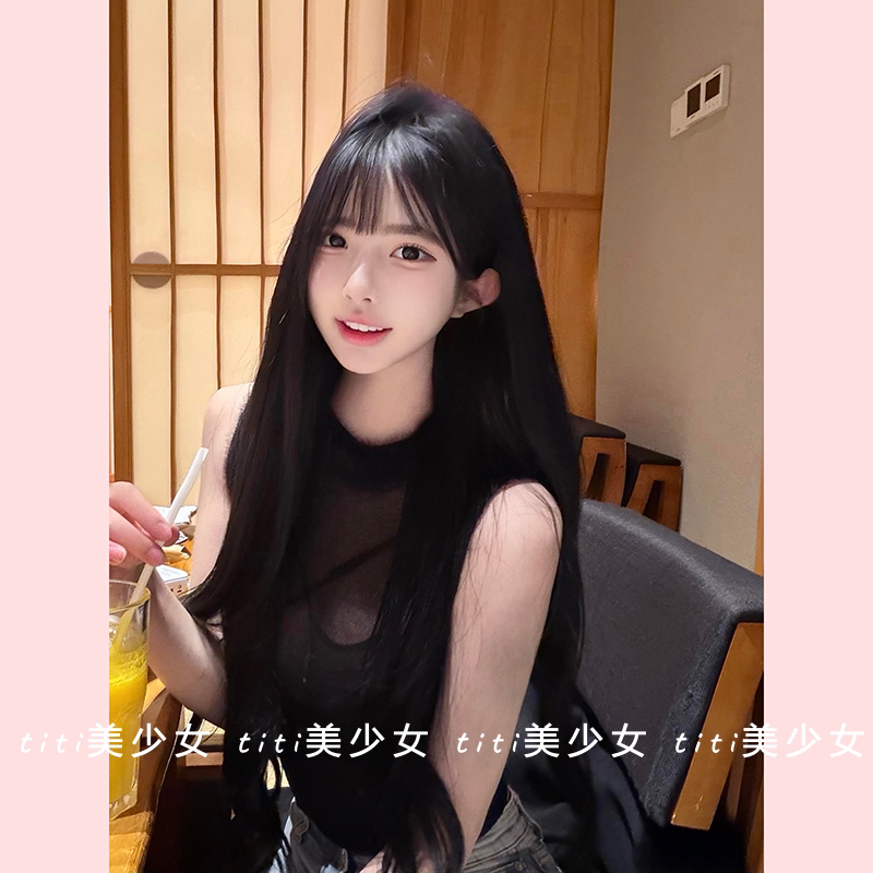 淘宝【TiTi美少女】纯欲风透视网纱性感天花板背心T恤内搭+交叉内衣女