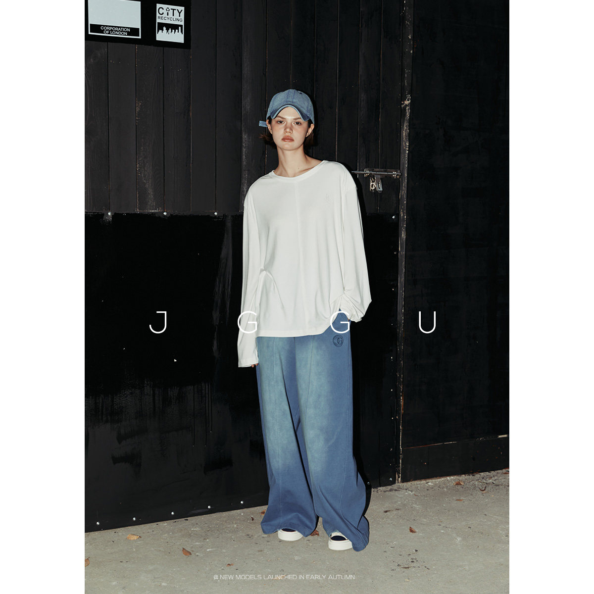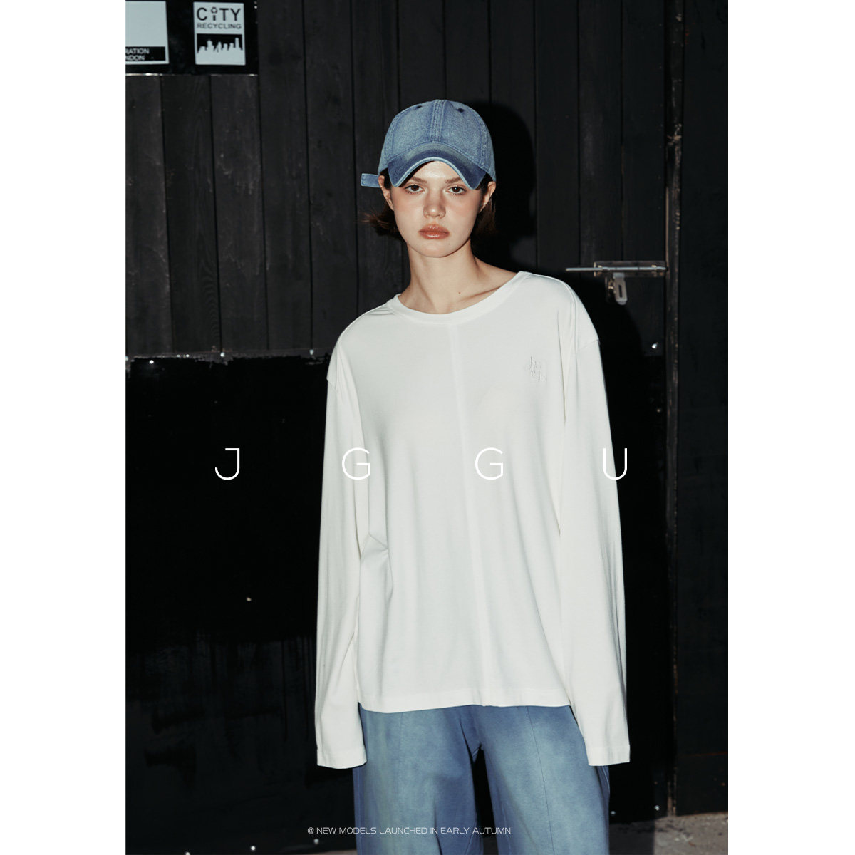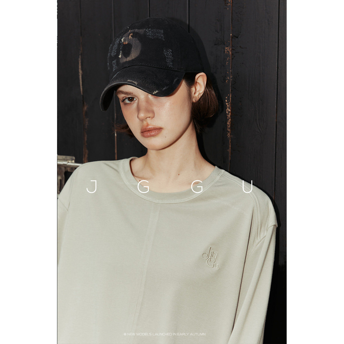 天猫晶咕黑标JGGU极简柔感分割线刺绣T恤宽松女