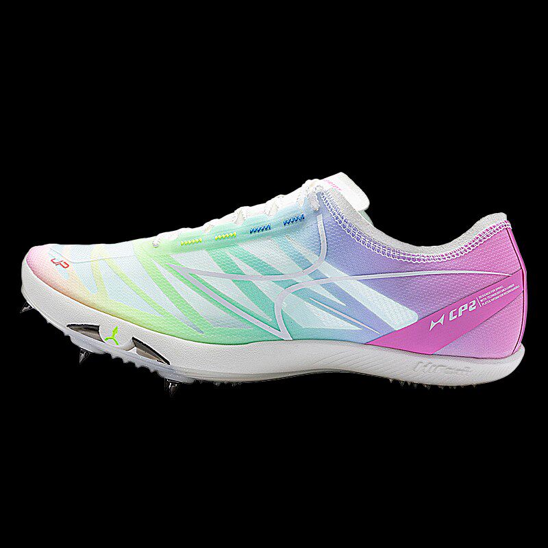 海尔斯CP2钉鞋是一款专为短跑设计的专业田径比赛鞋,男女学生均可穿着。鞋面采用轻量化透气材料,贴合脚型,提供出色的包裹性与舒适感。中底嵌入全掌碳板,有效提升能量回弹与推进力,助力爆发式起跑与高速冲刺。前掌配置6颗可更换式鞋钉,抓地力强劲,适应多种跑道条件。整体结构兼顾轻量与稳定性,重量仅约180克,显著减少跑步负担。无论是百米冲刺还是200米、400米比赛,CP2都能为运动员提供卓越性能支持,是校园田径训练与专业赛事的理想选择。