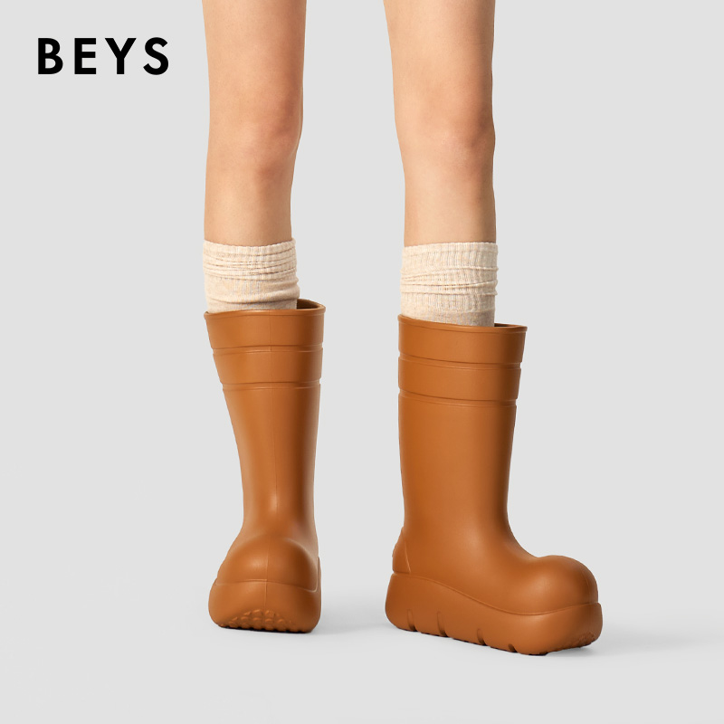 天猫【王悦伊同款】BEYS小丑鞋长筒靴女2025新款靴子厚底高筒雨靴雨鞋