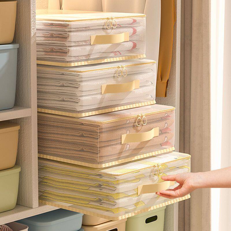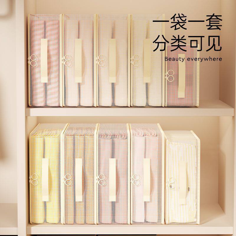 淘宝网纱四件套收纳袋换季衣服衣物整理袋衣柜棉被防尘分格带提手储物
