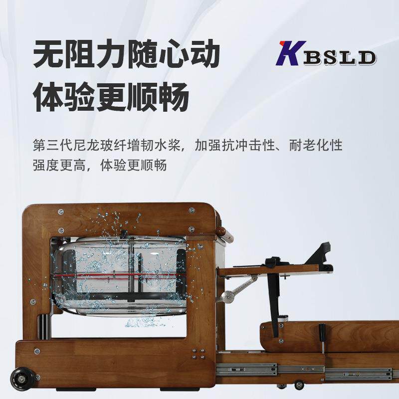 可定制水阻划船机 有氧运动家用健身器材 橡胶木水阻划船器原木色