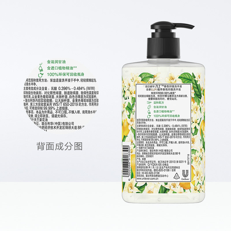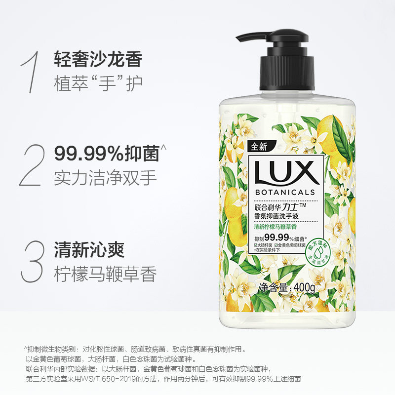天猫力士香氛抑菌清新柠檬马鞭草香洗手液400G