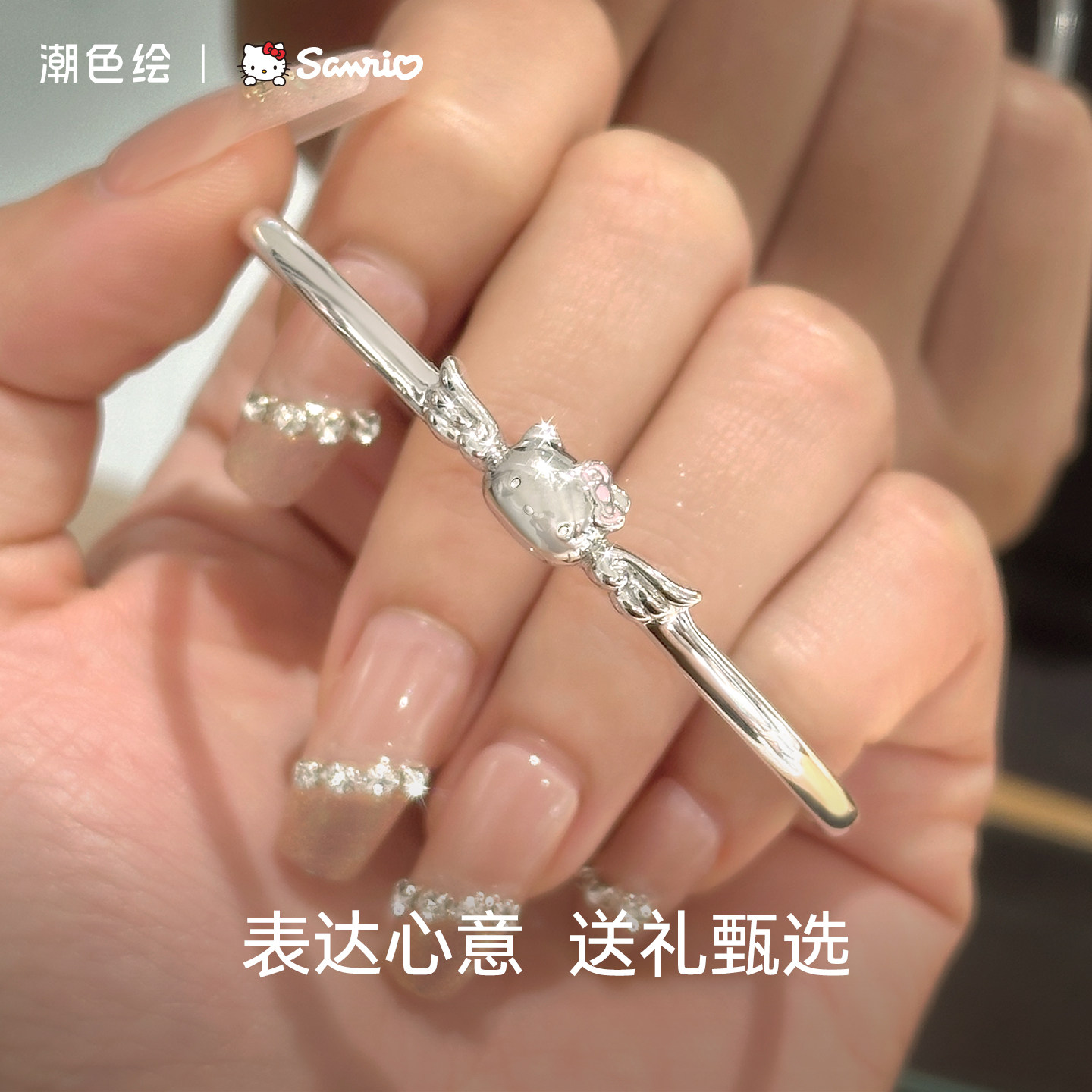 潮色绘 × Hello Kitty 联名款999纯银手镯,将经典可爱与时尚潮流完美融合。采用国际标准999足银材质,光泽温润,佩戴舒适,不易过敏,适合日常搭配。精致细腻的Hello Kitty造型镶嵌于手镯之上,搭配灵动色彩点缀,甜美俏皮又不失高级质感。无论是自用还是作为生日礼物送给女友、闺蜜,都充满心意与惊喜。包装精美,附赠品牌证书,彰显品质与诚意。这款手链不仅是饰物,更是传递爱与祝福的浪漫信物,让每一天都闪耀着Kitty的温柔陪伴。