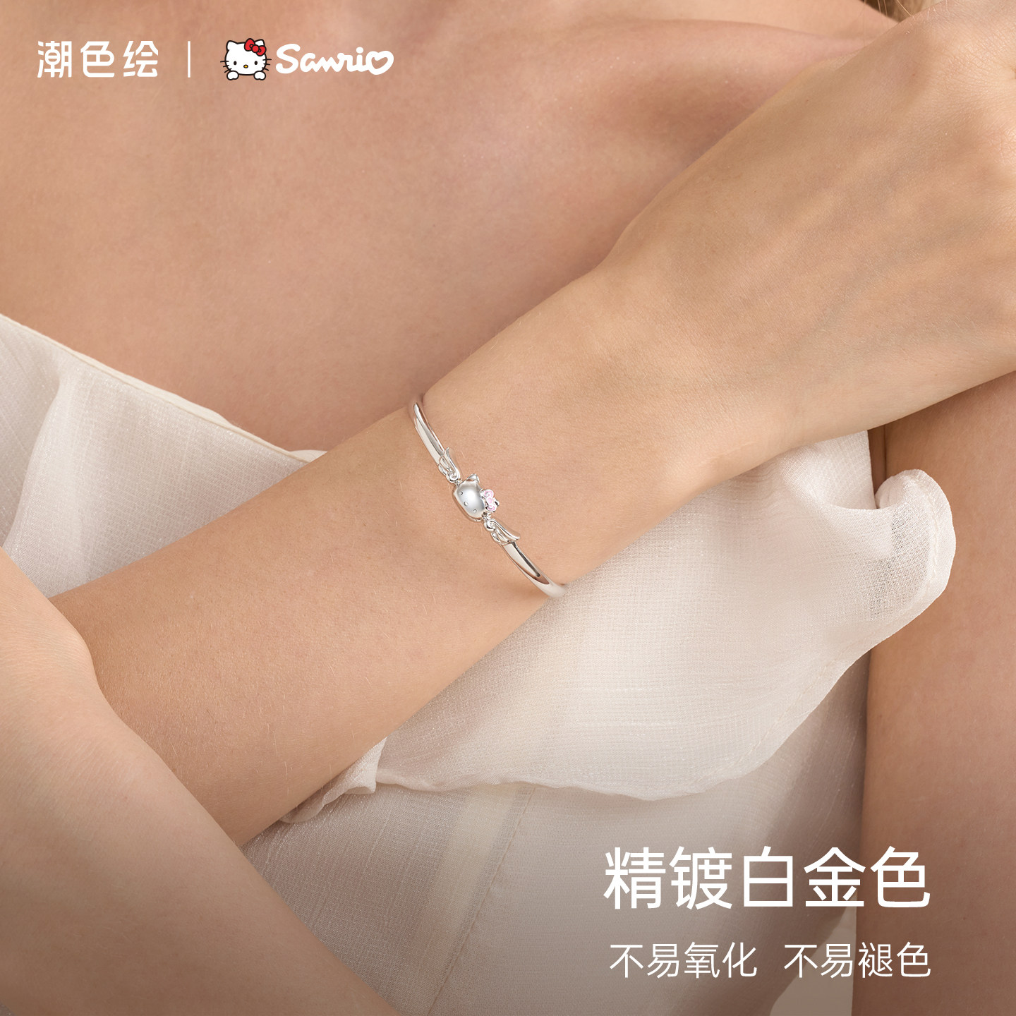 天猫潮色绘xHelloKitty猫999纯银手镯足银手链手饰女生送女友生日礼物