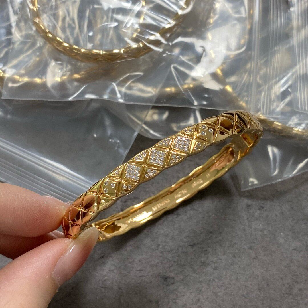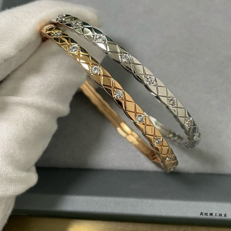 淘宝coco菱格纹手镯带钻手环女玫瑰金手饰小香风轻奢素圈环925银镀18K
