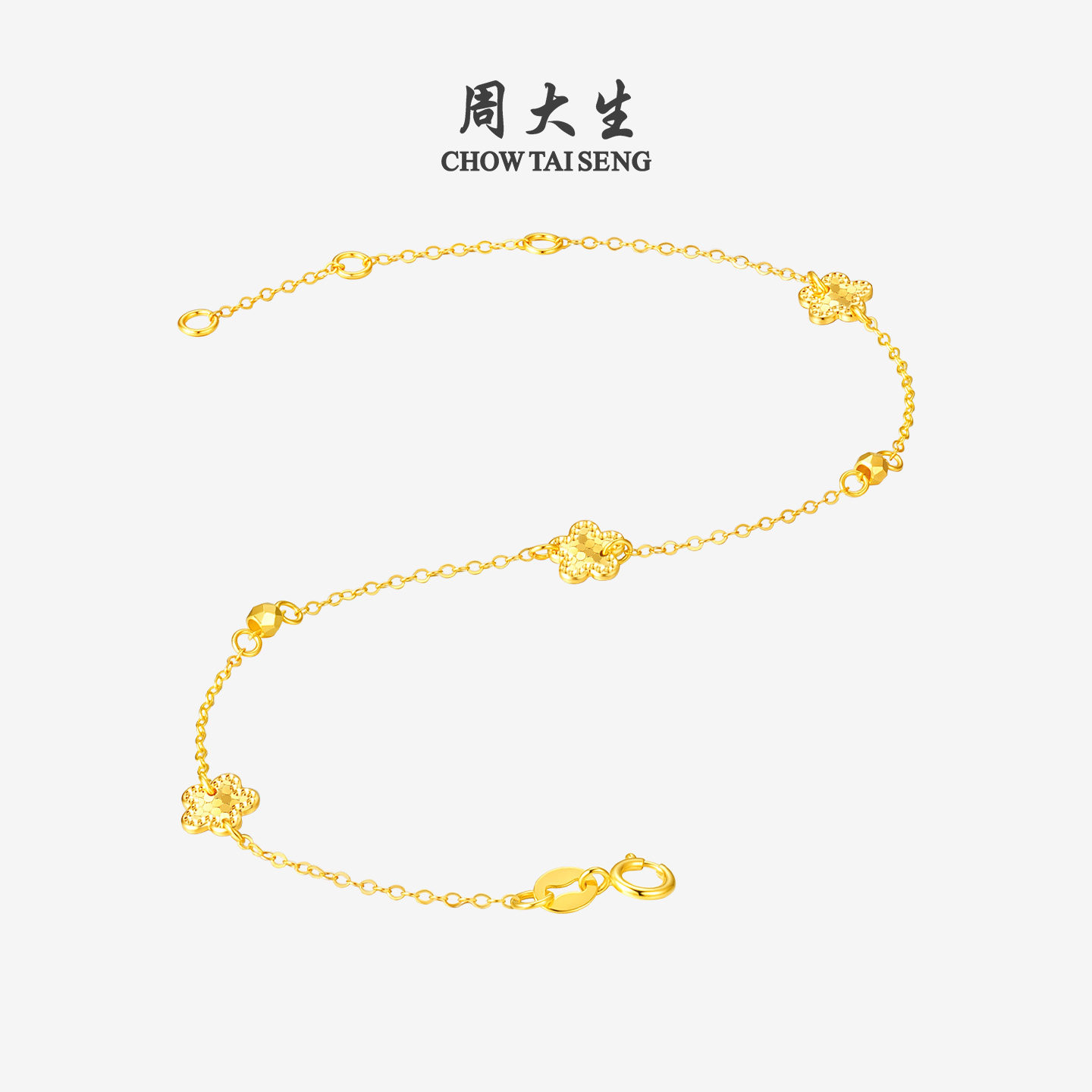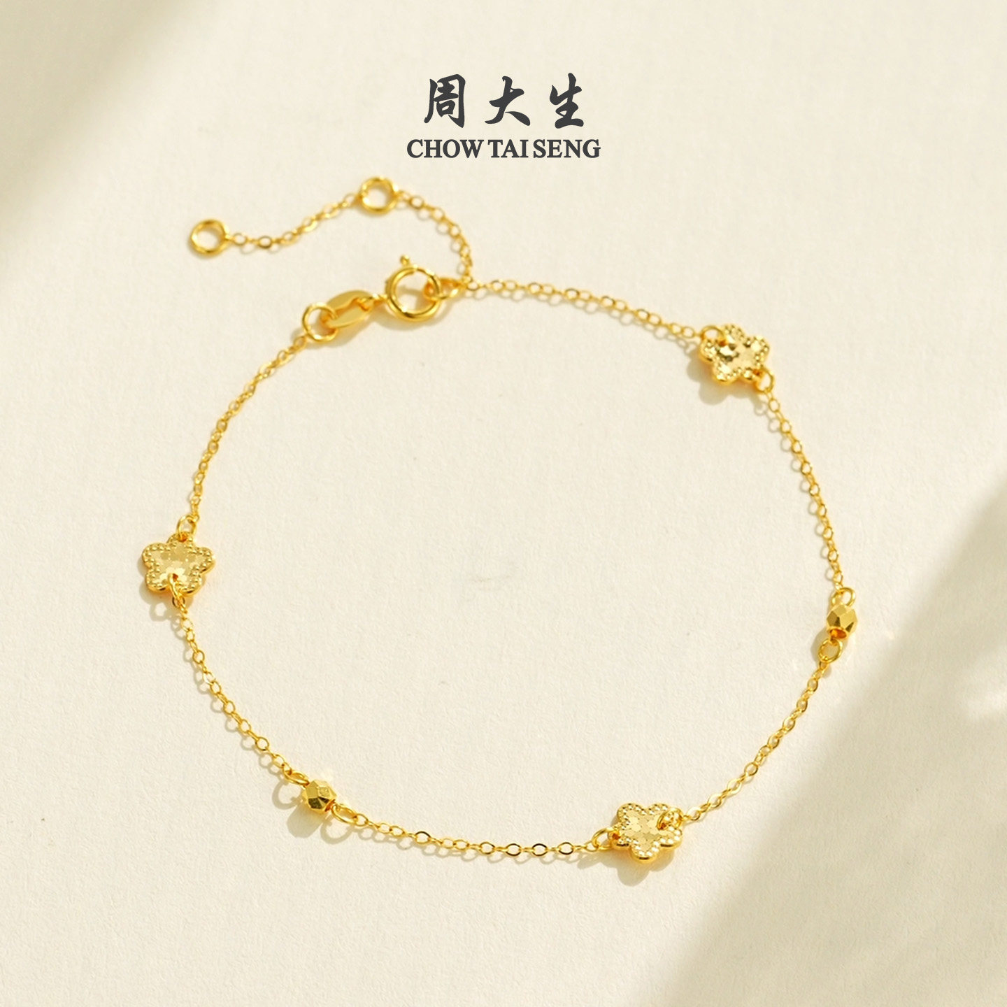天猫周大生黄18K金手链爆闪碎金几何花朵百搭叠戴彩金手饰三八节礼物