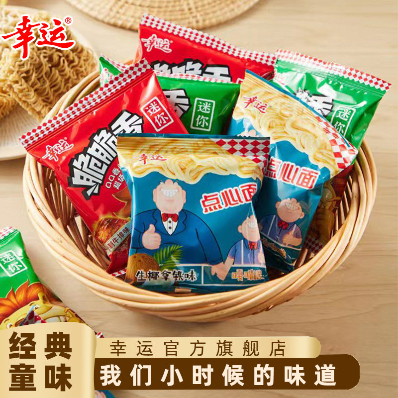 天猫幸运方便面迷你脆脆香干脆面整箱干吃面香脆包邮四味童年休闲零食