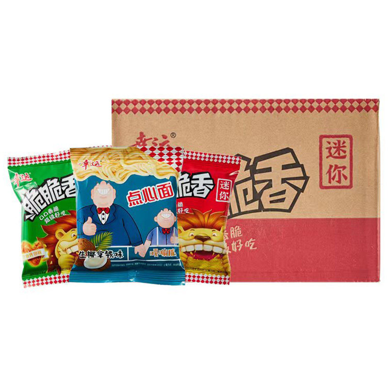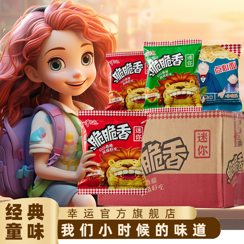 幸运方便面迷你脆脆香干脆面,带你重温童年经典味道!整箱装超值实惠,四种口味随心搭配——香葱鸡汁、红烧牛肉、香辣虾味、海鲜味,每一口都香脆可口,回味无穷。采用独特工艺烘烤而成,非油炸更健康,干吃酥脆,泡食软韧,吃法多样。小包装设计,方便携带,随时享受美味零食时光。无论是课间、办公、追剧还是户外旅行,都是理想伴侣。现在下单即享包邮服务,轻松入手整箱美味,唤醒记忆中的那份简单快乐。幸运脆脆香,口口都精彩,快来品尝这份来自童年的幸福滋味!