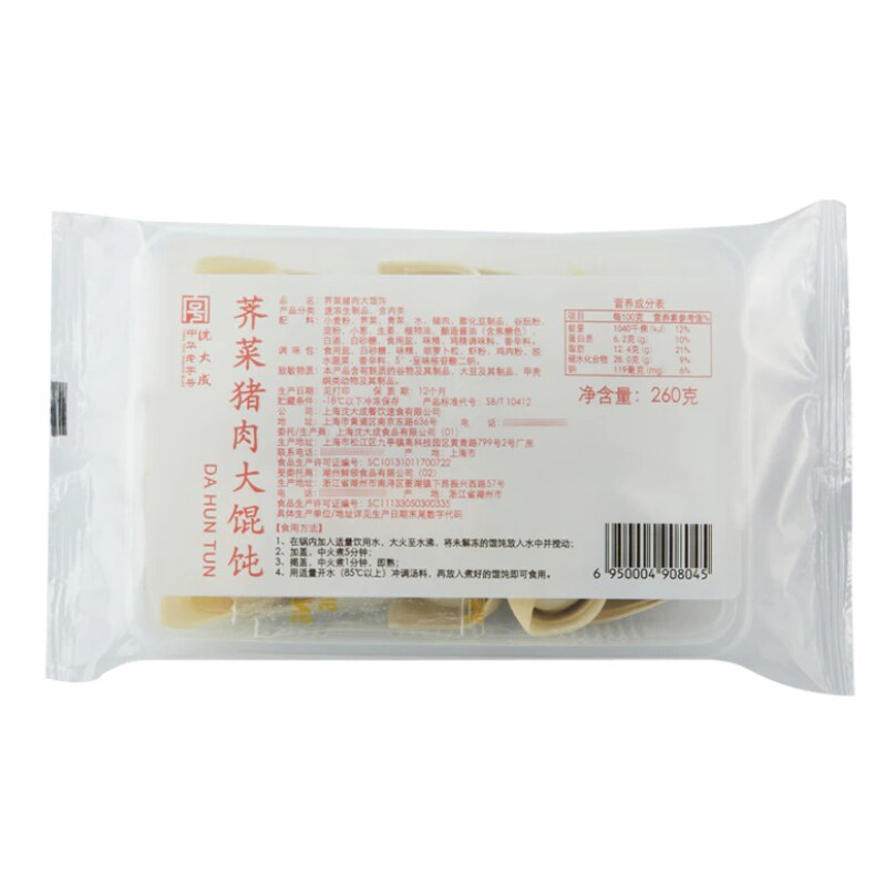 淘宝沈大成荠菜鲜肉大馄饨/金汤酸菜鱼大馄饨 上海早特产方便速冻早餐