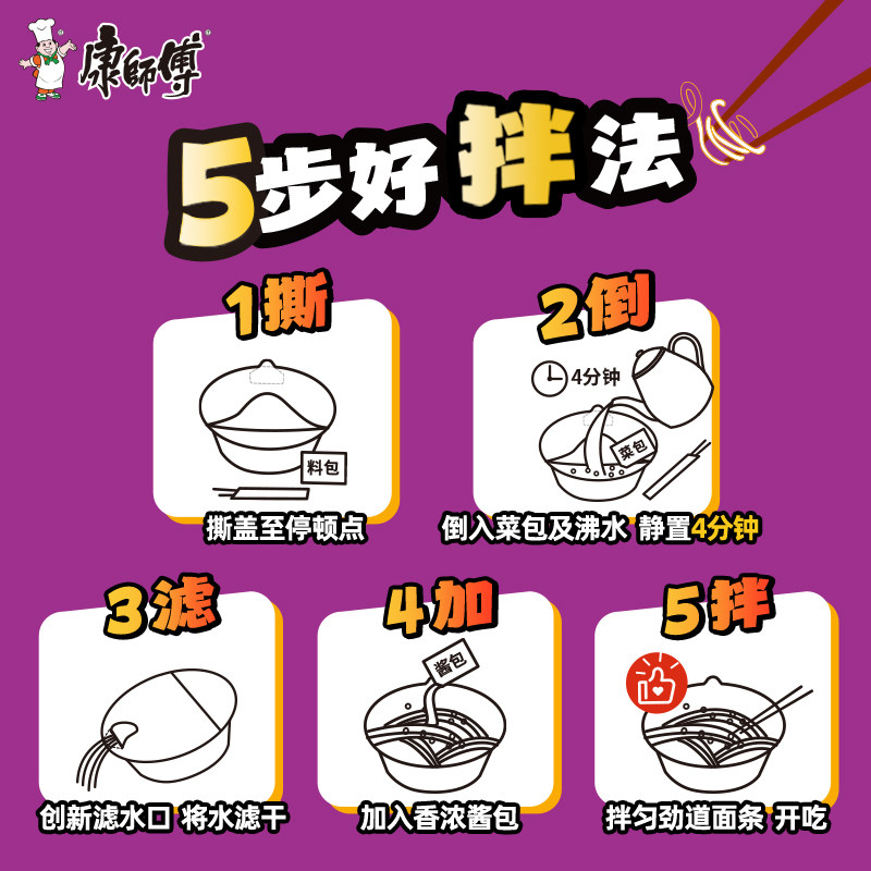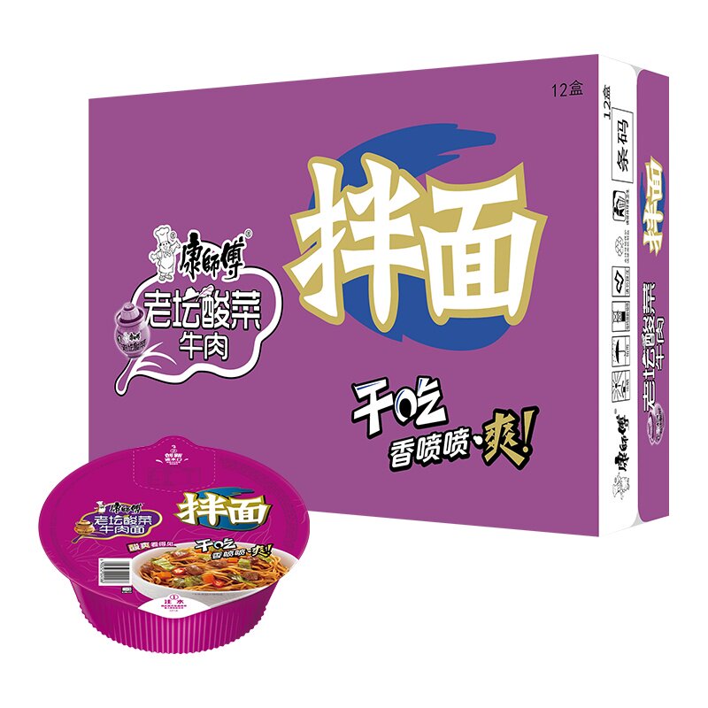 康师傅经典干拌面——酸菜牛肉面碗装,是深受消费者喜爱的速食美味。精选优质小麦粉制成筋道面条,搭配浓郁醇厚的酸菜牛肉风味酱包,酸辣开胃,香气扑鼻。特别添加脱水蔬菜包,保留食材鲜香,营养更均衡。只需热水冲泡5分钟,沥干后拌匀即可享用,方便快捷,口感丰富。碗装设计便于携带与食用,无论是忙碌工作、深夜加班还是户外旅行,都能随时满足味蕾需求。康师傅凭借多年匠心工艺,将传统风味与现代便捷完美融合,让每一口都充满家的味道,是居家常备、应急解馋的理想选择。
