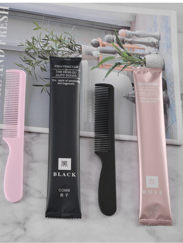 淘酒店宾馆一次性梳子 塑料双色长条梳木梳头梳定制客房洗漱用品