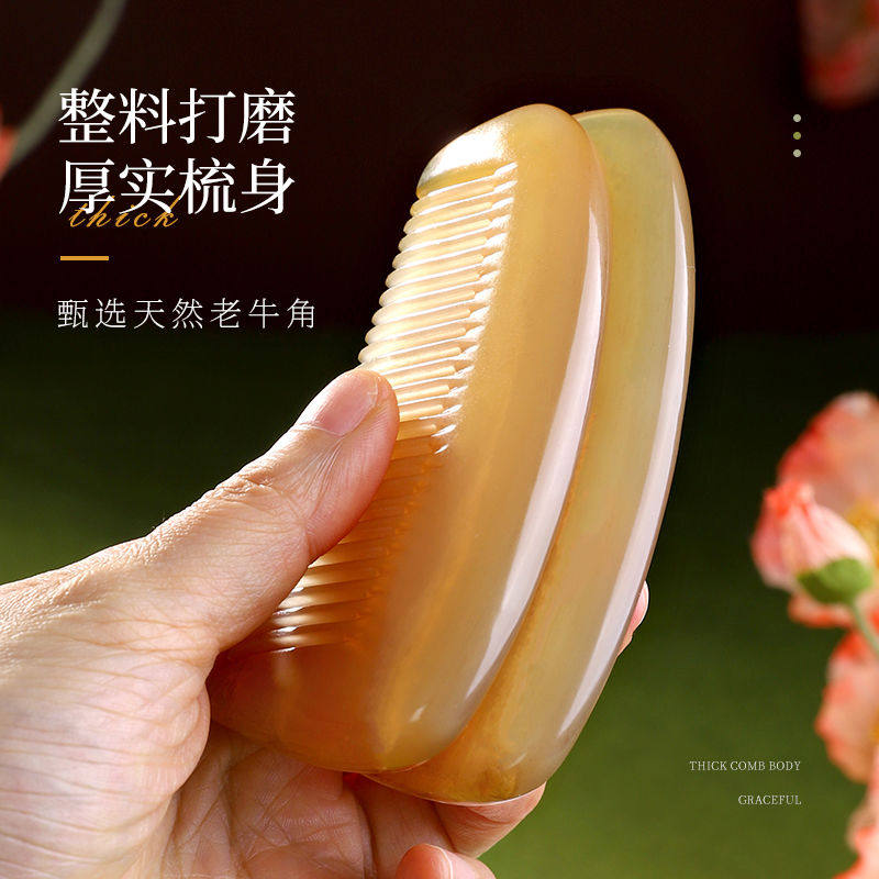 天然牛角梳子,采用优质天然牛角精工打磨而成,质地温润,触感细腻。其天然材质不易产生静电,有效减少头发毛躁与断裂,特别适合干燥季节使用。小巧便携设计,轻松放入包包,随时随地呵护秀发。梳齿圆润顺滑,既能梳理打结秀发,又可轻柔按摩头皮,促进血液循环,缓解头部疲劳。适合女士日常护理,尤其适合长发、卷发及敏感发质人群。正品保障,环保健康,无化学添加,是居家出行必备的护发好帮手。天然牛角梳,不仅是实用梳具,更是传承千年的养生之选。