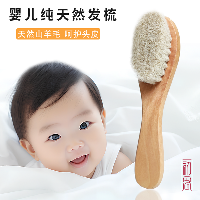 淘宝初念婴儿梳子羊毛纯手工宝宝去头垢刷按摩新生儿童洗澡洗头软毛刷
