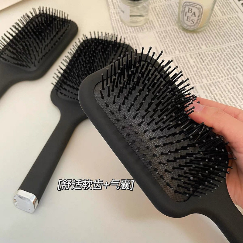 这款韩版ins风黑色高颜值气垫梳,专为女学生及卷发人群设计,外观简约时尚,黑色磨砂质感尽显高级。采用优质气囊设计,弹性适中,梳头时轻柔贴合头皮,有效按摩头部穴位,缓解疲劳。梳齿圆润光滑,不拉扯头发,特别适合卷发打理,减少毛躁与静电,令秀发顺滑有光泽。轻巧便携,握感舒适,日常通勤、宿舍使用皆宜。无论是干发还是湿发状态,都能轻松梳理,呵护发丝健康。兼具实用性与美观性,是提升日常护发体验的理想选择,深受年轻女性喜爱。