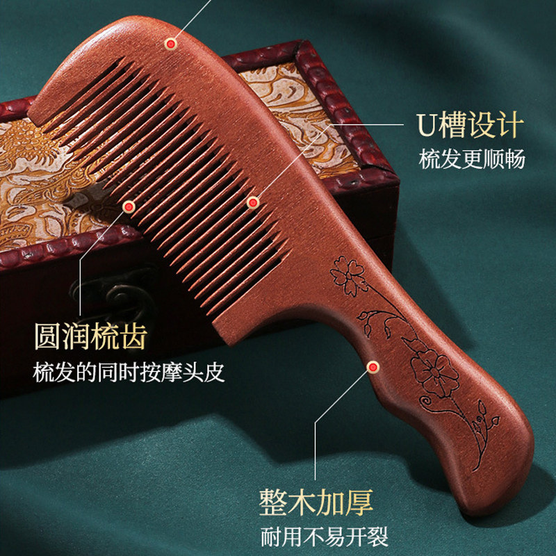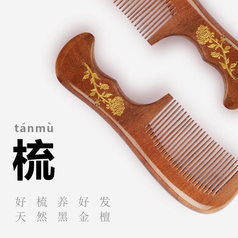 金丝檀木篦子桃木篦子密齿胡须檀木梳子便携加密美发梳虱子梳家用