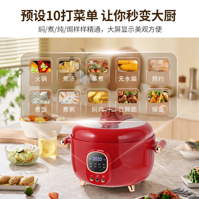 淘【爱妻】6L语音按键钛金珐琅智能煮饭煲汤多功能智能鸳鸯电高压锅