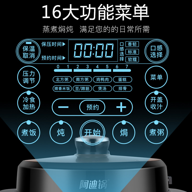 淘宝洛贝阿迪锅电压力锅5L家用大容量智能双胆电高压锅全自动官方正品