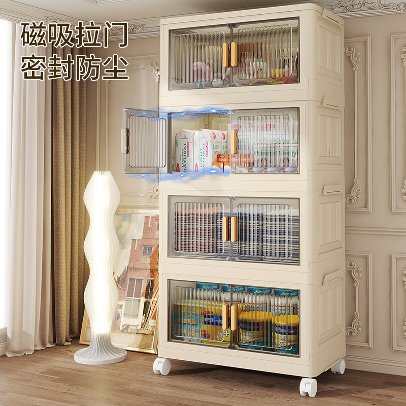 零食收纳柜家用多层免安装储物柜子可移动塑料儿童衣服折叠置物柜