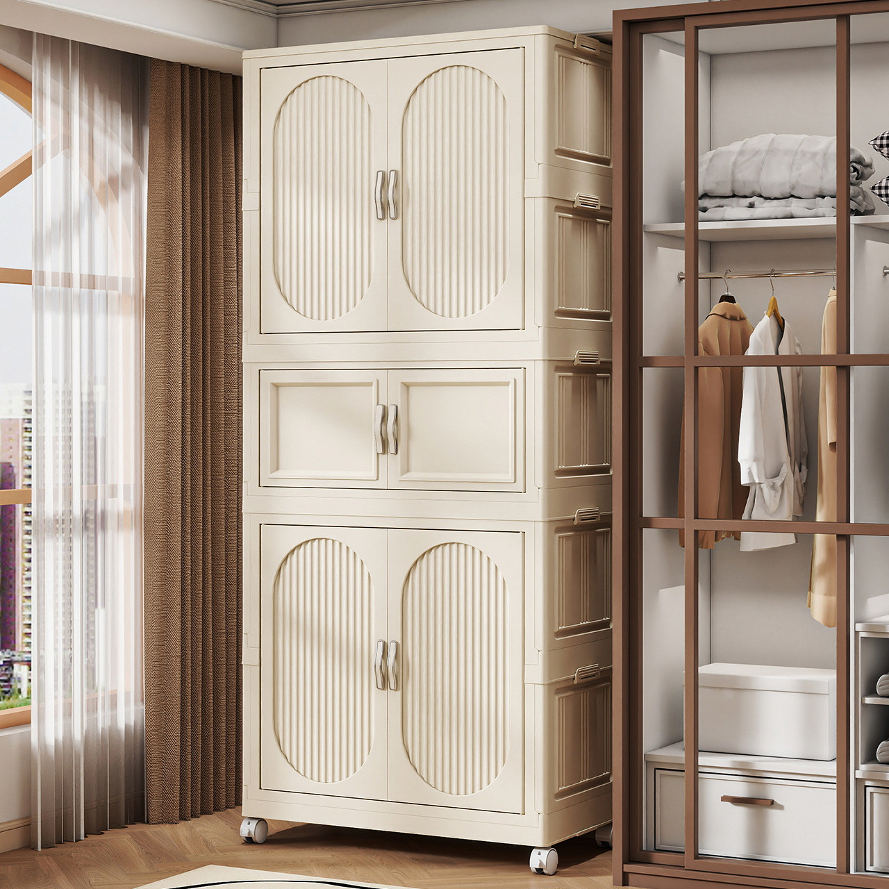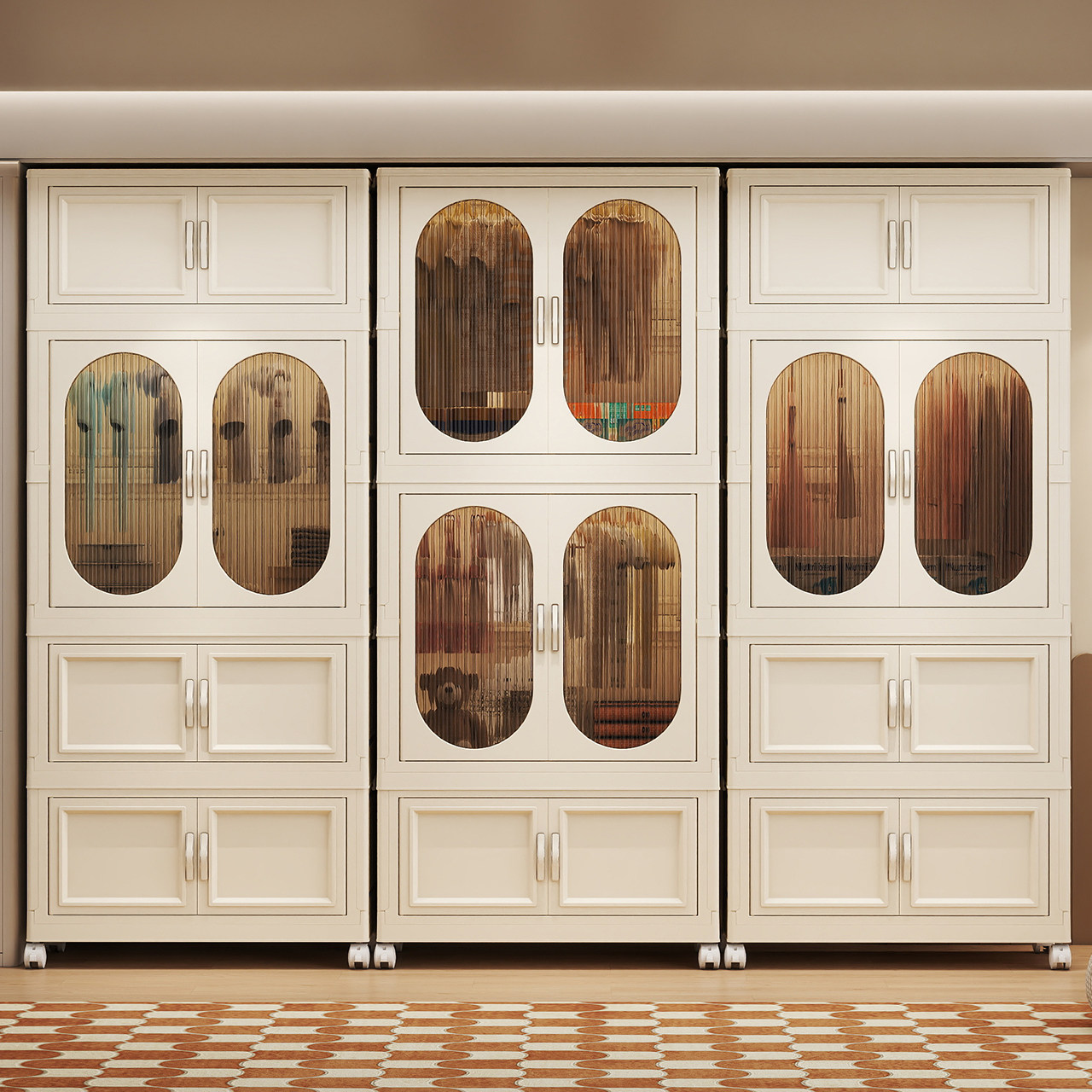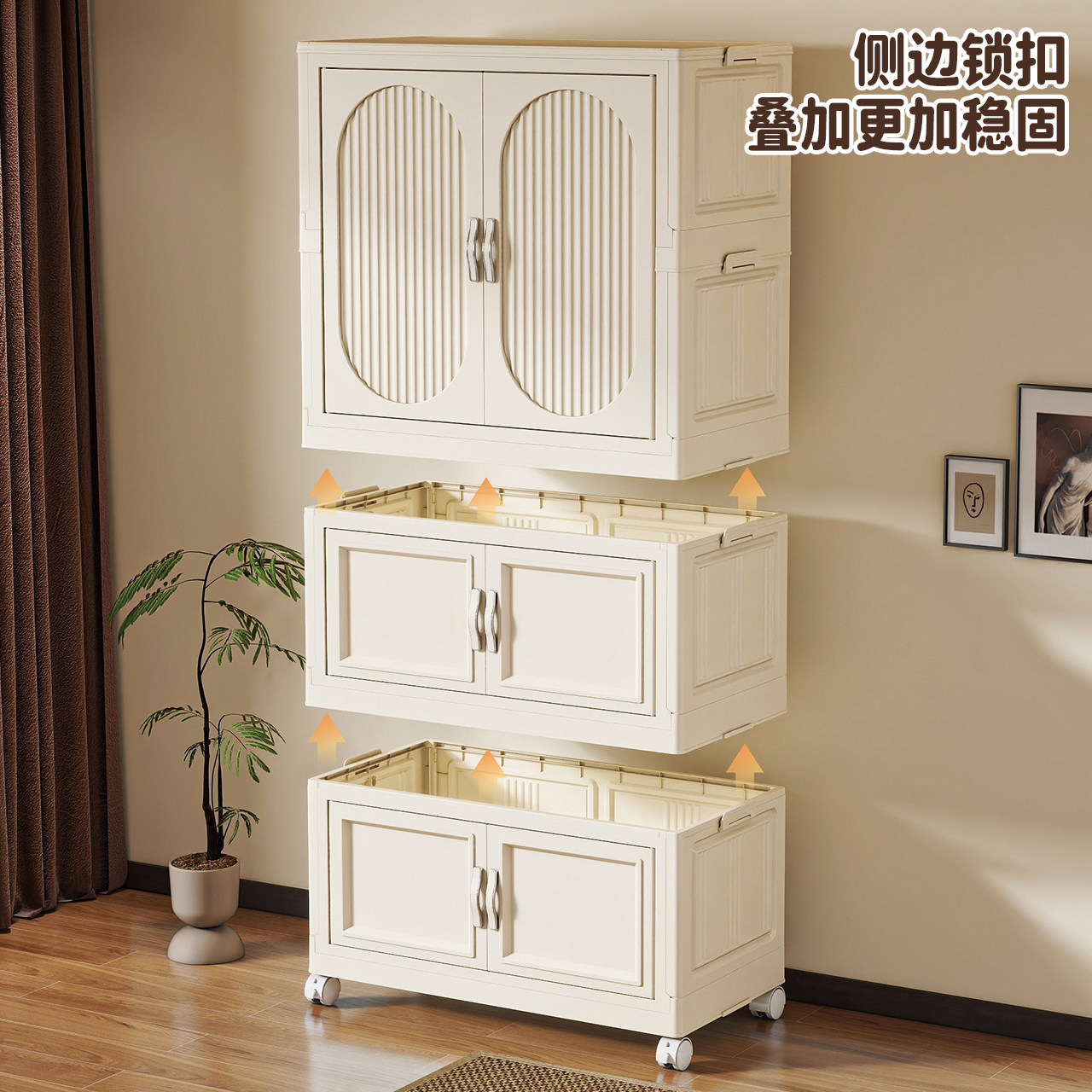 折叠收纳柜,家用多功能储物神器。这款多层收纳柜设计简约实用,适合卧室、儿童房等家居空间。其大容量设计满足家庭各类物品的收纳需求,从衣物到玩具,一应俱全。特别为家庭中的宝宝设计,带有婴儿安全轮,移动方便且安全可靠。