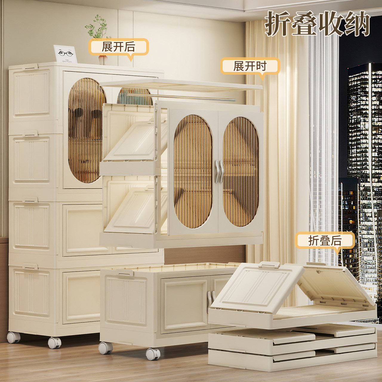 飘窗免安装折叠收纳柜衣柜家用收纳储物箱客厅零食置物柜厨房整理