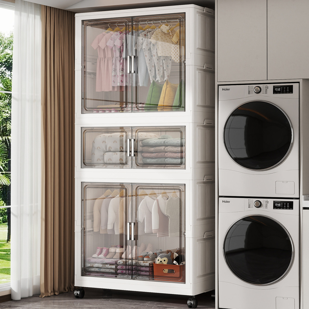 淘折叠衣服收纳柜靠墙储物柜塑料简易婴儿衣服多层置物架家用整理柜