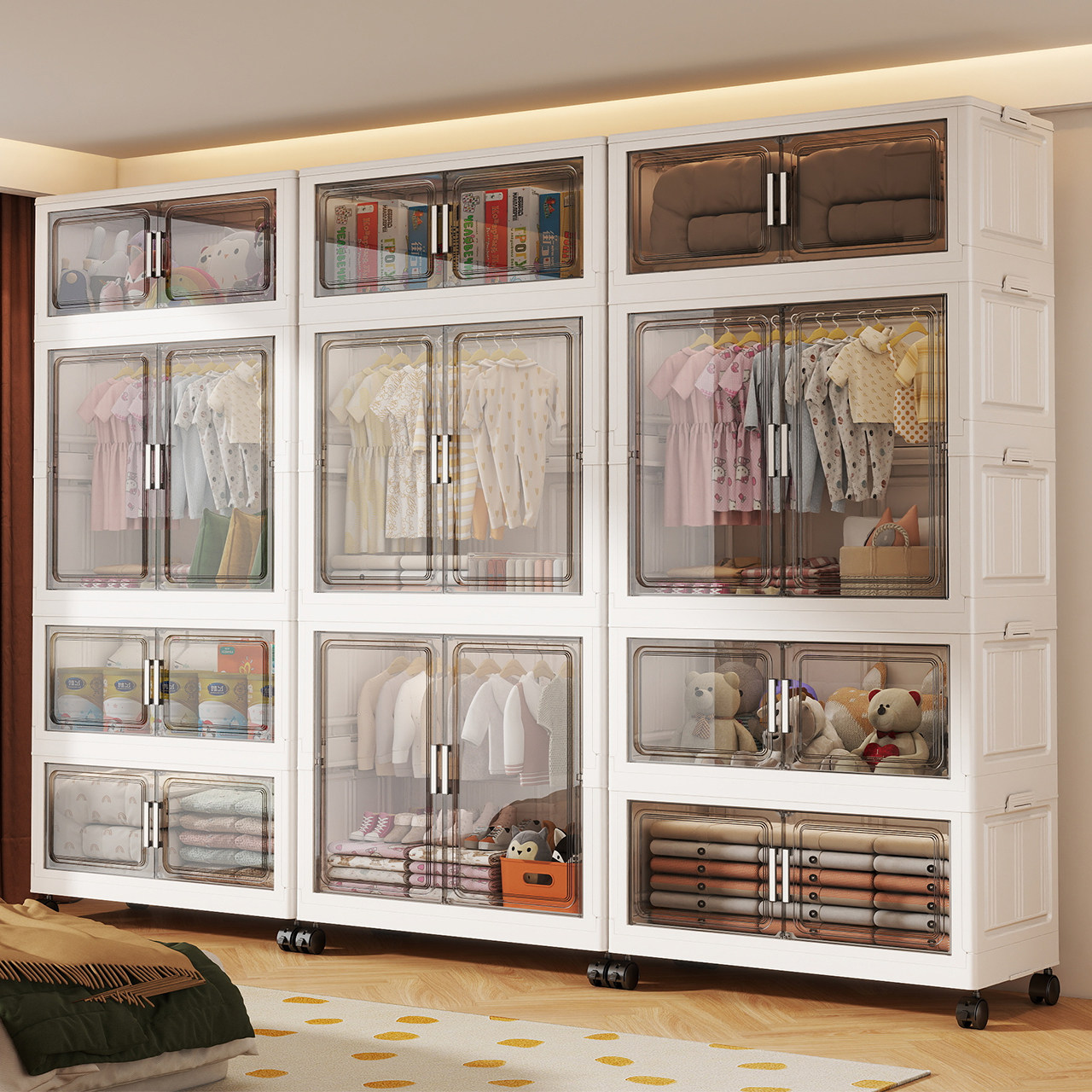 折叠衣服收纳柜靠墙储物柜塑料简易婴儿衣服多层置物架家用整理柜