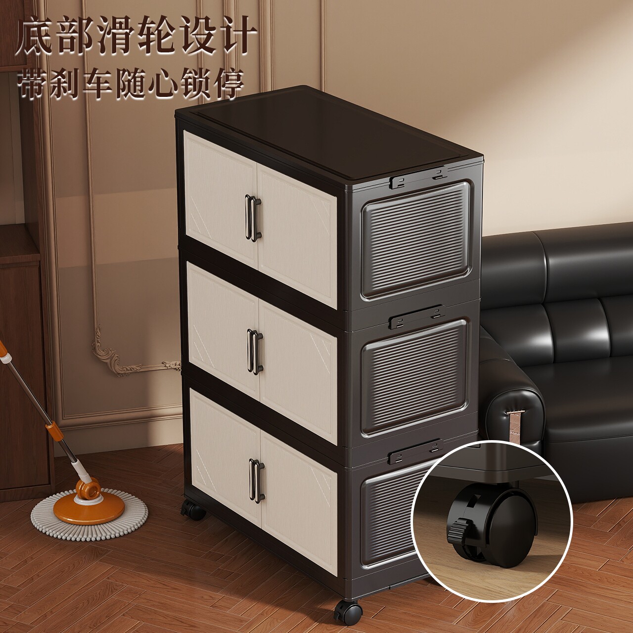 折叠储物柜家用客厅免安装收纳柜卧室宝宝衣柜多层婴儿带轮小衣橱