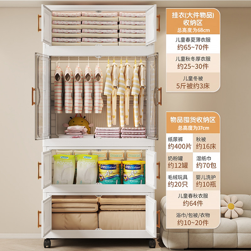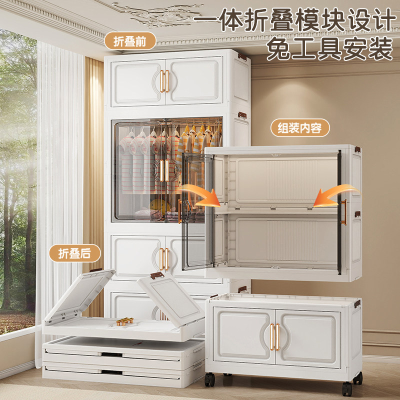 折叠储物柜家用客厅免安装收纳柜卧室宝宝衣柜多层婴儿带轮小衣橱