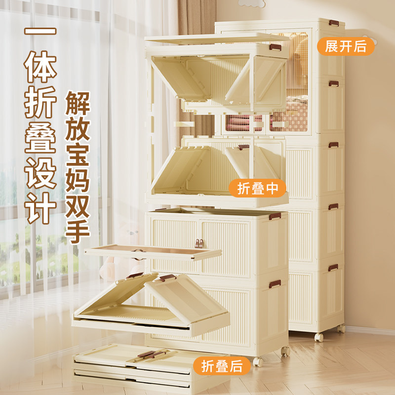 淘免安装收纳柜折叠式储物柜多层可移动置物柜客厅卧室通用折叠柜子