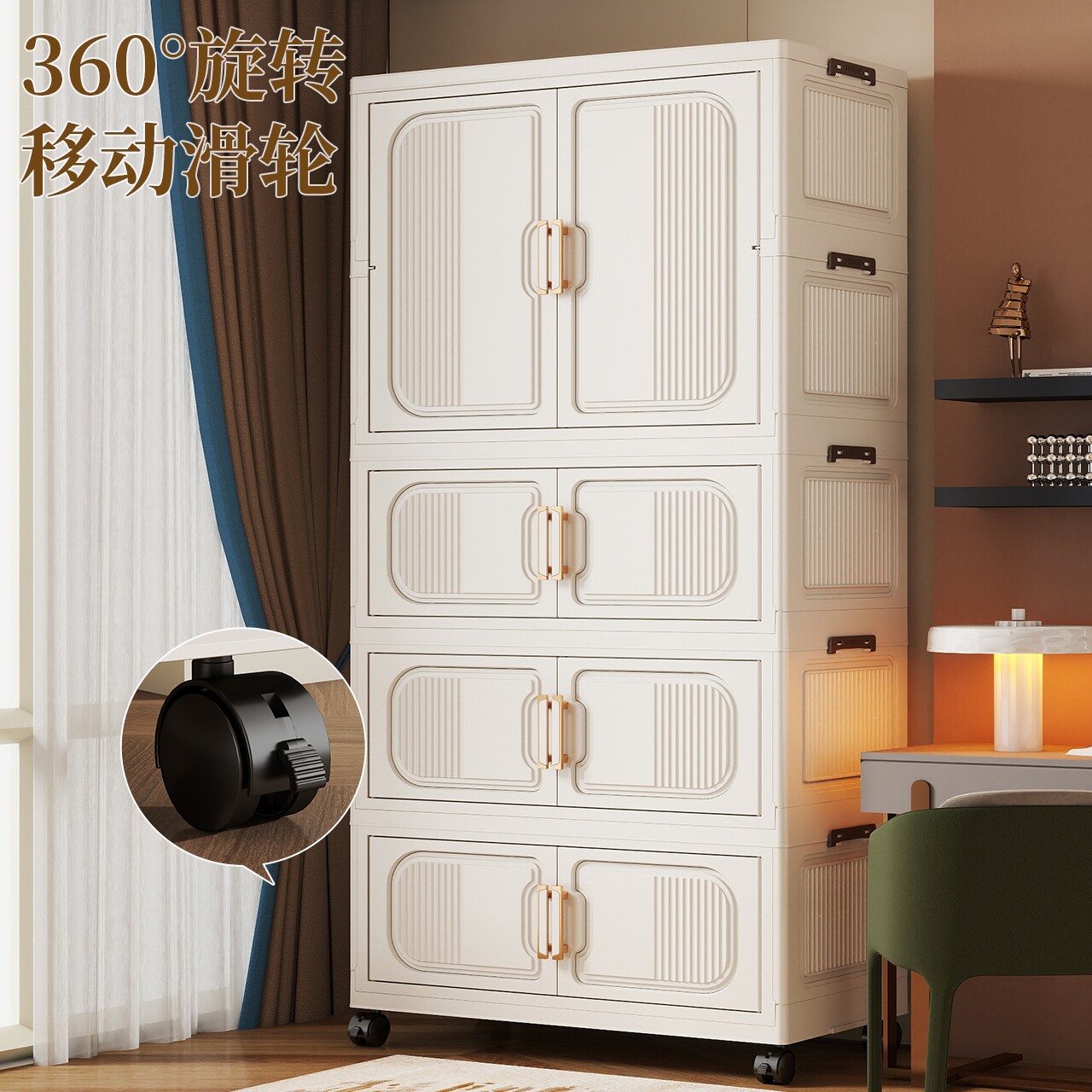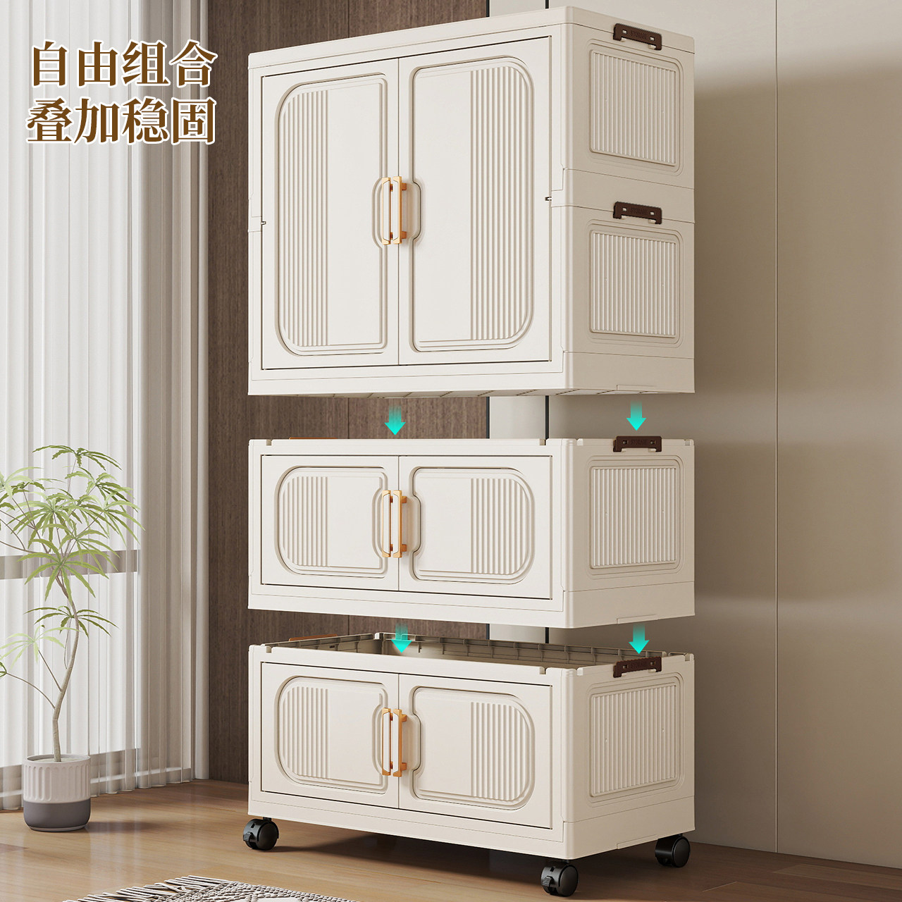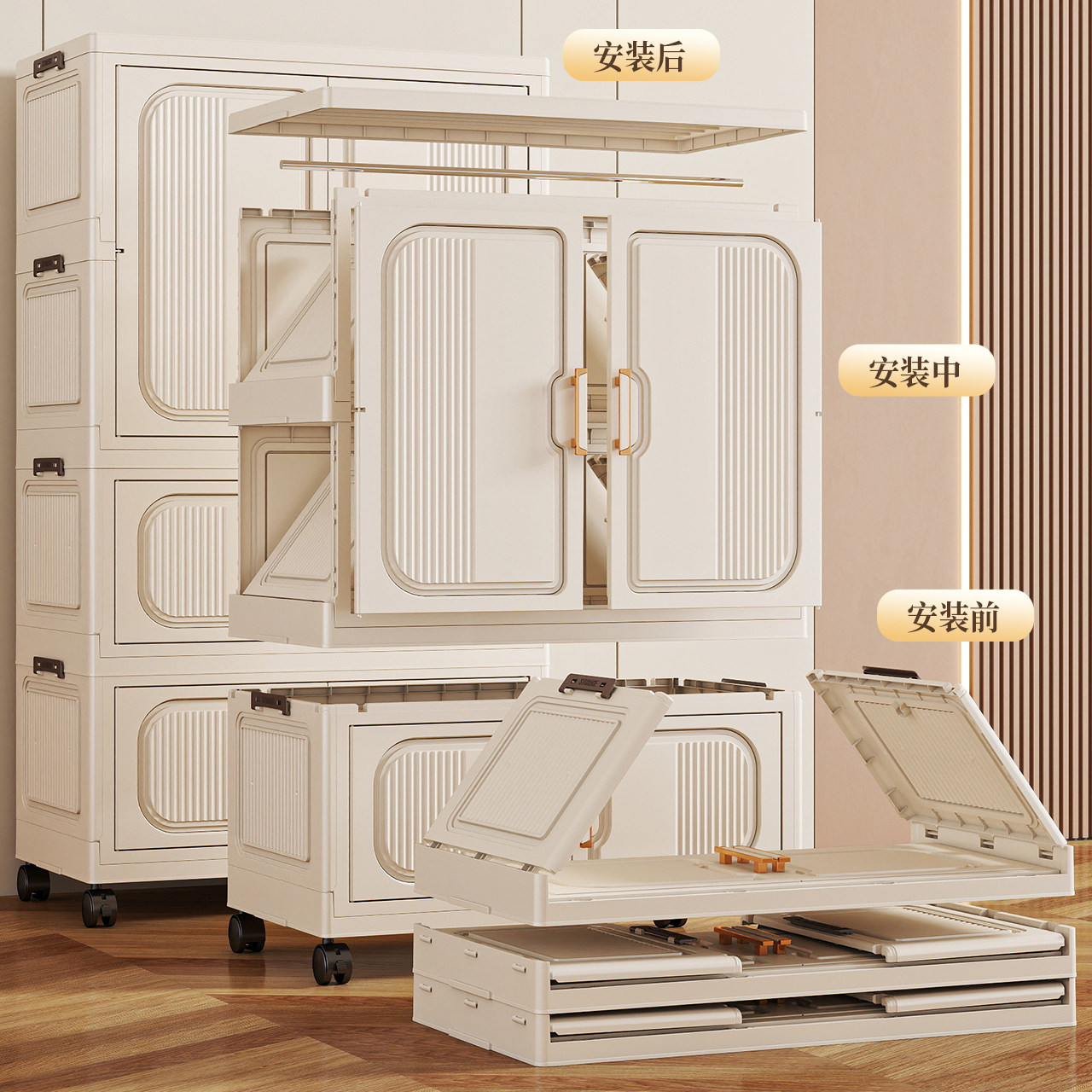 淘折叠储物柜家用客厅免安装收纳柜卧室宝宝衣柜多层婴儿带轮小衣橱