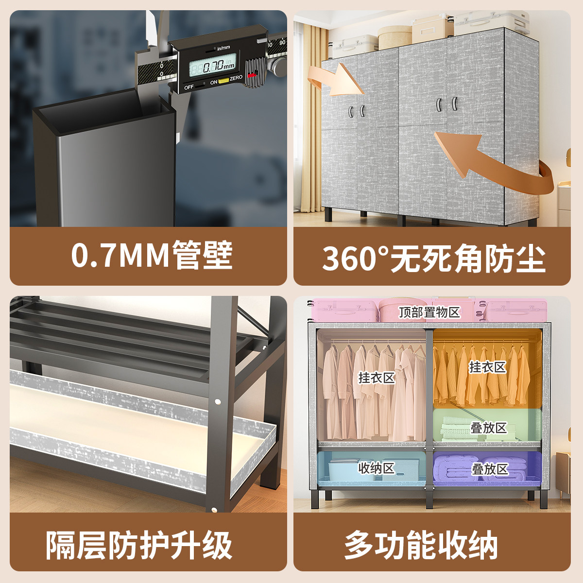 开门款免安装折叠衣柜出租房用卧室家用简易布衣柜加厚加粗全钢架