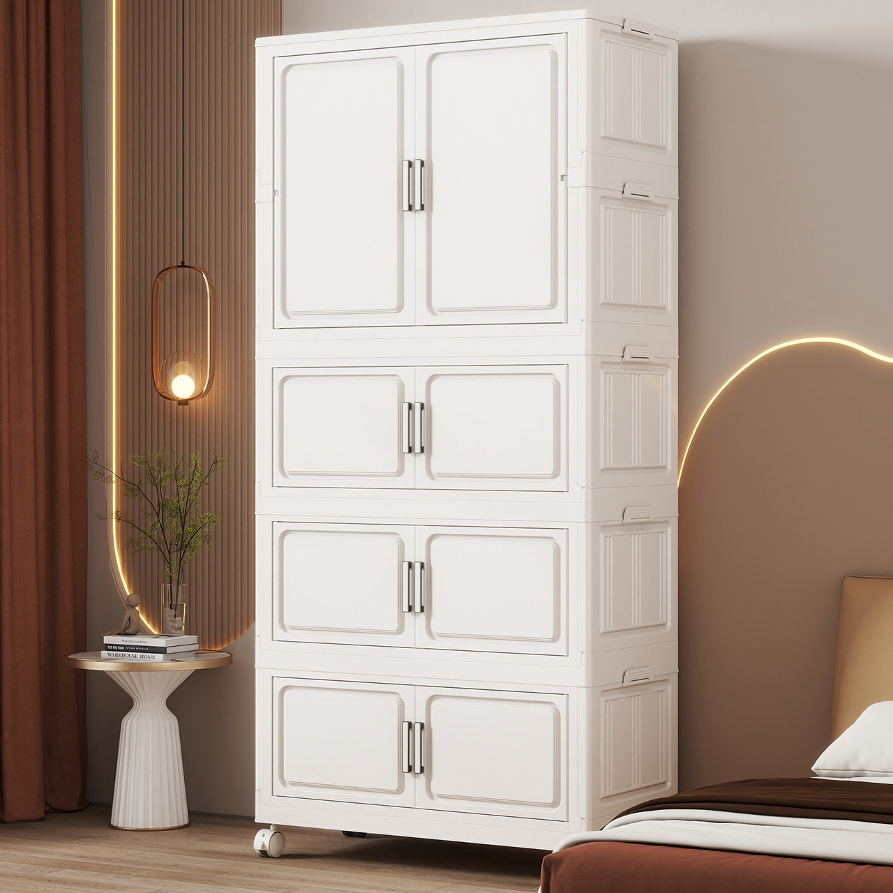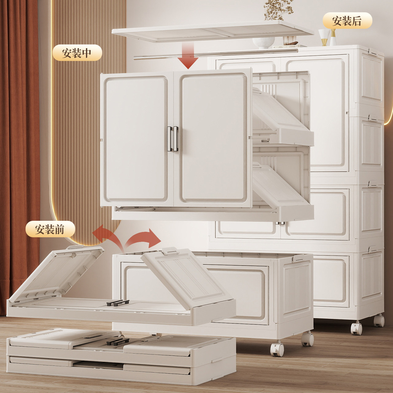 折叠储物柜家用客厅免安装收纳柜卧室宝宝衣柜多层婴儿带轮小衣橱