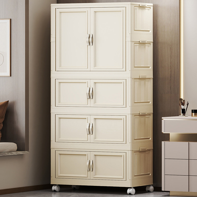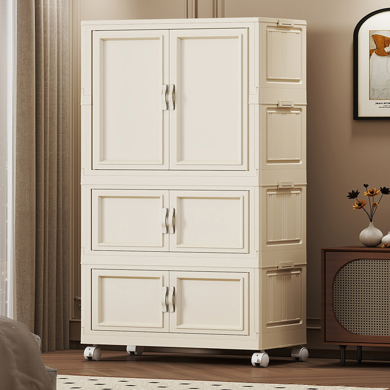 折叠储物柜家用客厅免安装收纳柜卧室宝宝衣柜多层婴儿带轮小衣橱